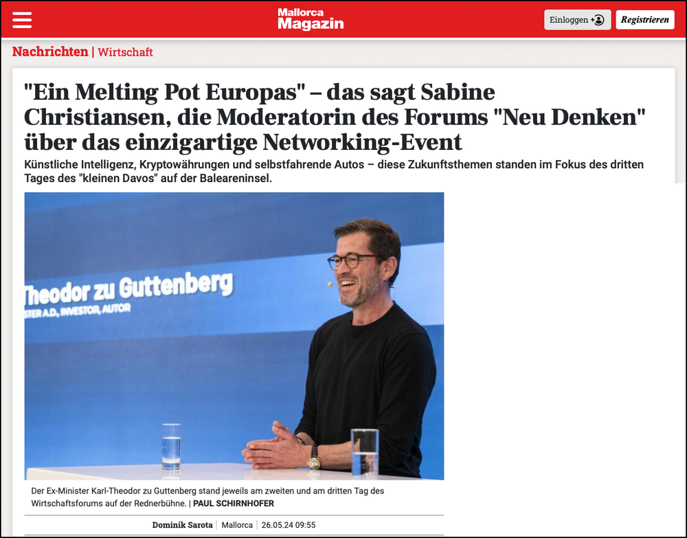 "Jammern? Hilft nicht. NEU DENKEN ist besser. Und selbst Lösungen finden. Auf die deutsche Politik zu hoffen, ist Zeitverschwendung. Sie gegenwärtig nicht das, was von ihr gefordert wird." Das sagte mir Willi Plattes, Steuerberater und Chef der PlattesGroup, als ich ihn am Freitag beim Wirtschaftsforum „Neu Denken“ in Palma traf. Plattes initiierte den Gipfel - in diesem Jahr zum siebten Mal. Am Samstagabend kam ich zurück von meinem kurzen Abstecher nach Palma. 48 Stunden konstruktiver Austausch mit einer ganzen Reihe der rund 250 Gäste. Mit dabei: Unternehmer, Manager und Experten aus unterschiedlichen Bereichen sowie frühere Akteure der Politik. Aktive Top-Politiker hatten abgesagt.